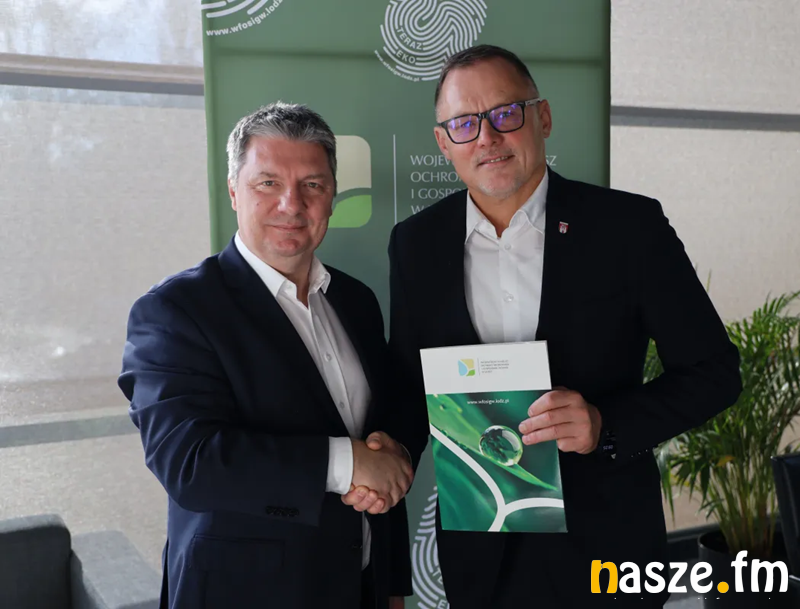 Paweł Osiewała, prezydent Sieradza oraz Piotr Kopka, prezes Wojewódzkiego Funduszu Ochrony Środowiska i Gospodarki Wodnej w Łodzi podpisali umowę na 150 000 zł na projekt "Edukacja ekologiczna sieradzan 2025".