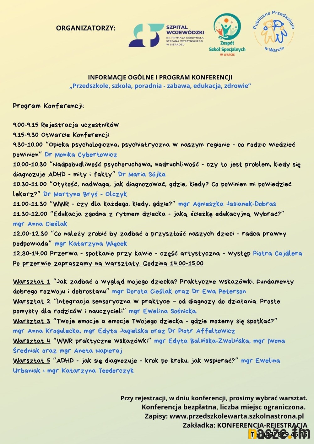 Centrum Psychiatryczne w Warcie, Zespół Szkół Specjalnych w Warcie oraz Publiczne Przedszkole w Warcie zapraszają rodziców, opiekunów oraz wszystkich zainteresowanych rozwojem i potrzebami małego dziecka. Spotkanie ma charakter edukacyjny i profilaktyczny - przypomina, że troska o dobrostan dziecka nie zaczyna się dopiero w momencie kryzysu, ale na co dzień.