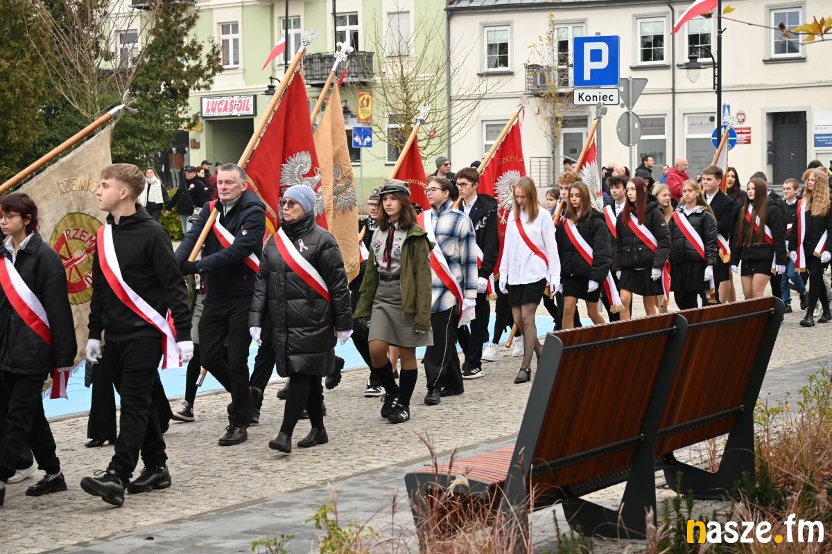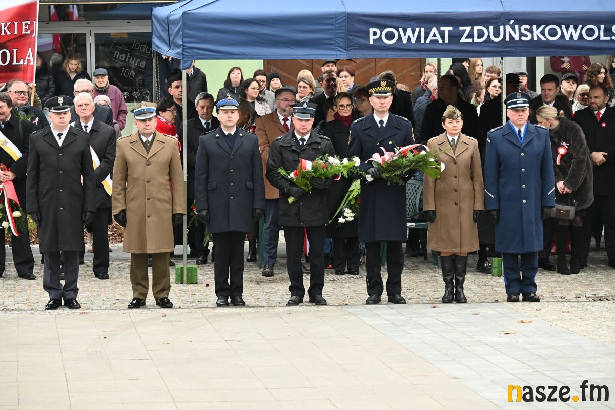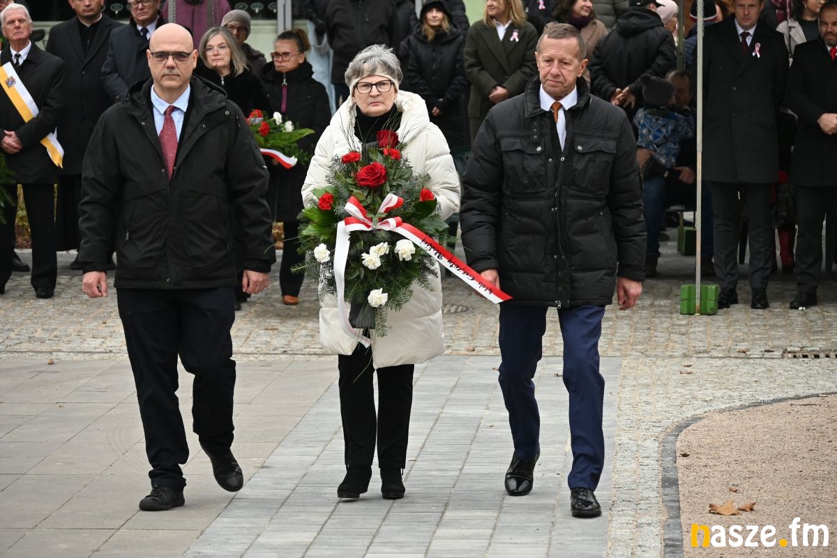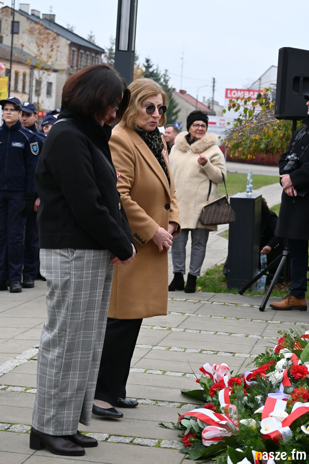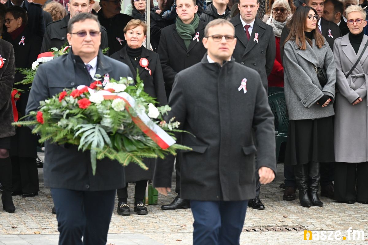 Po nabożeństwie, w rytmie marszowej muzyki, uczestnicy udali się na plac Wolności. Tam, przy pomniku Marszałka Józefa Piłsudskiego, odbyła się oficjalna część uroczystości. Był hymn państwowy, przemówienia, i podniosły moment złożenia kwiatów przez liczne delegacje. Uczniowie pierwszych klas Zespołu Szkół im. Kazimierza Kałużewskiego i Juliusza Sylli złożyli uroczyste ślubowanie na sztandar szkoły. Swoim występem wydarzenie uświetnili młodzi artyści z Powiatowego Młodzieżowego Domu Kultury "Na pięterku".