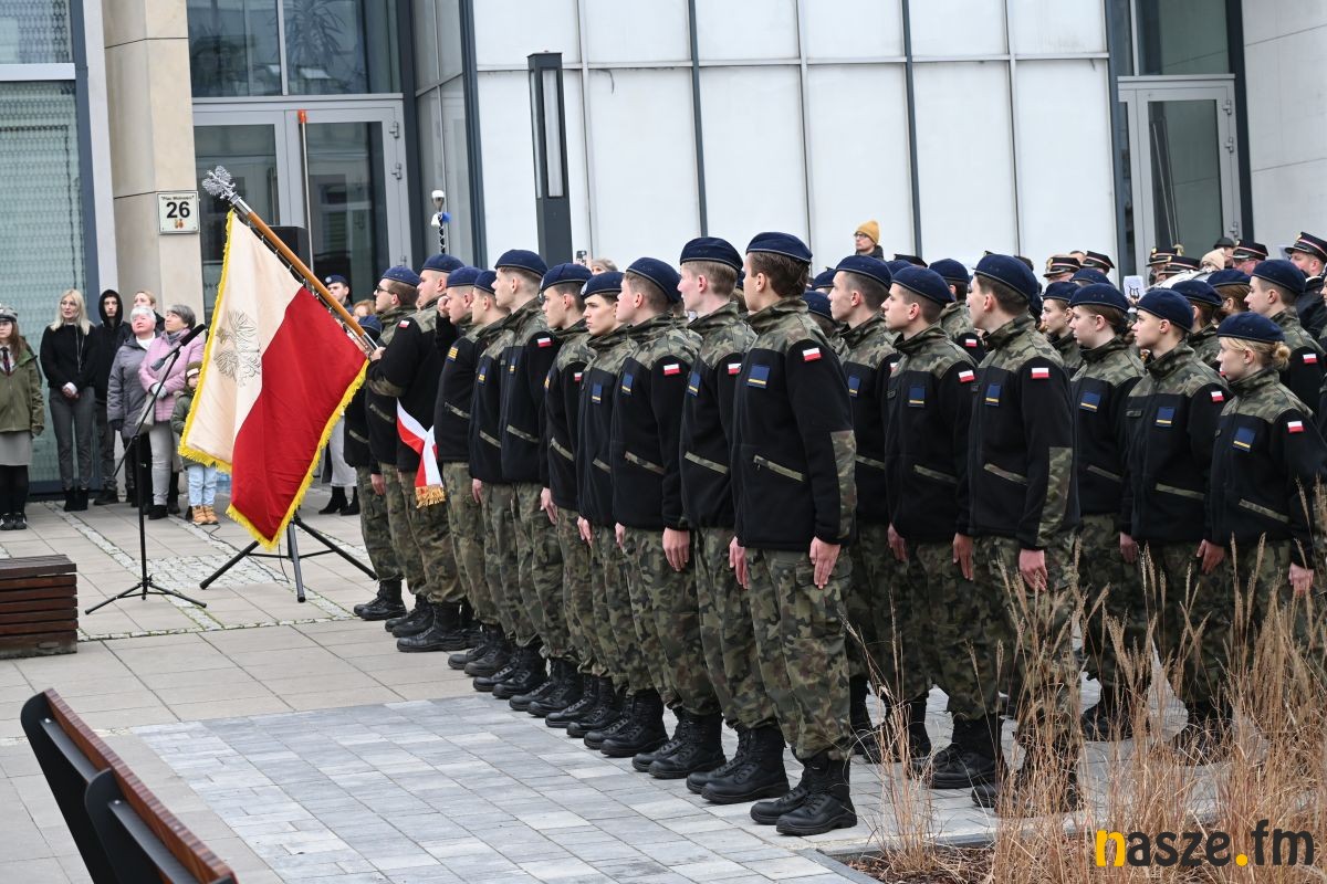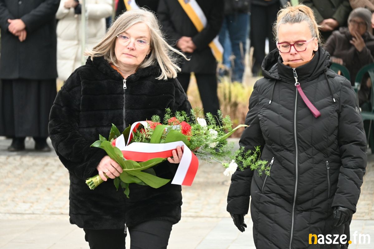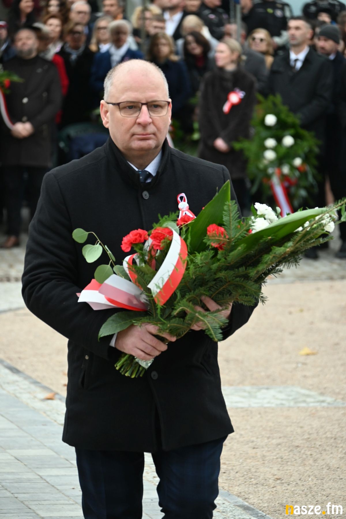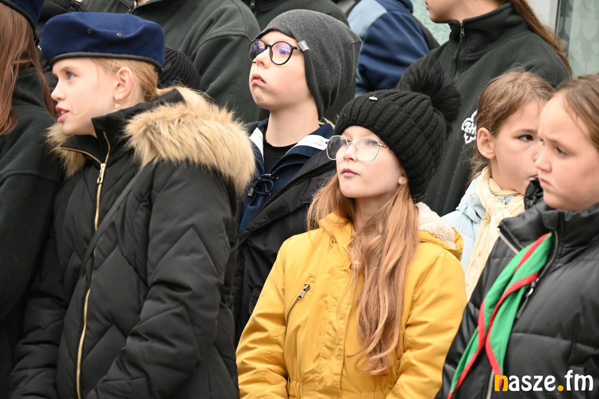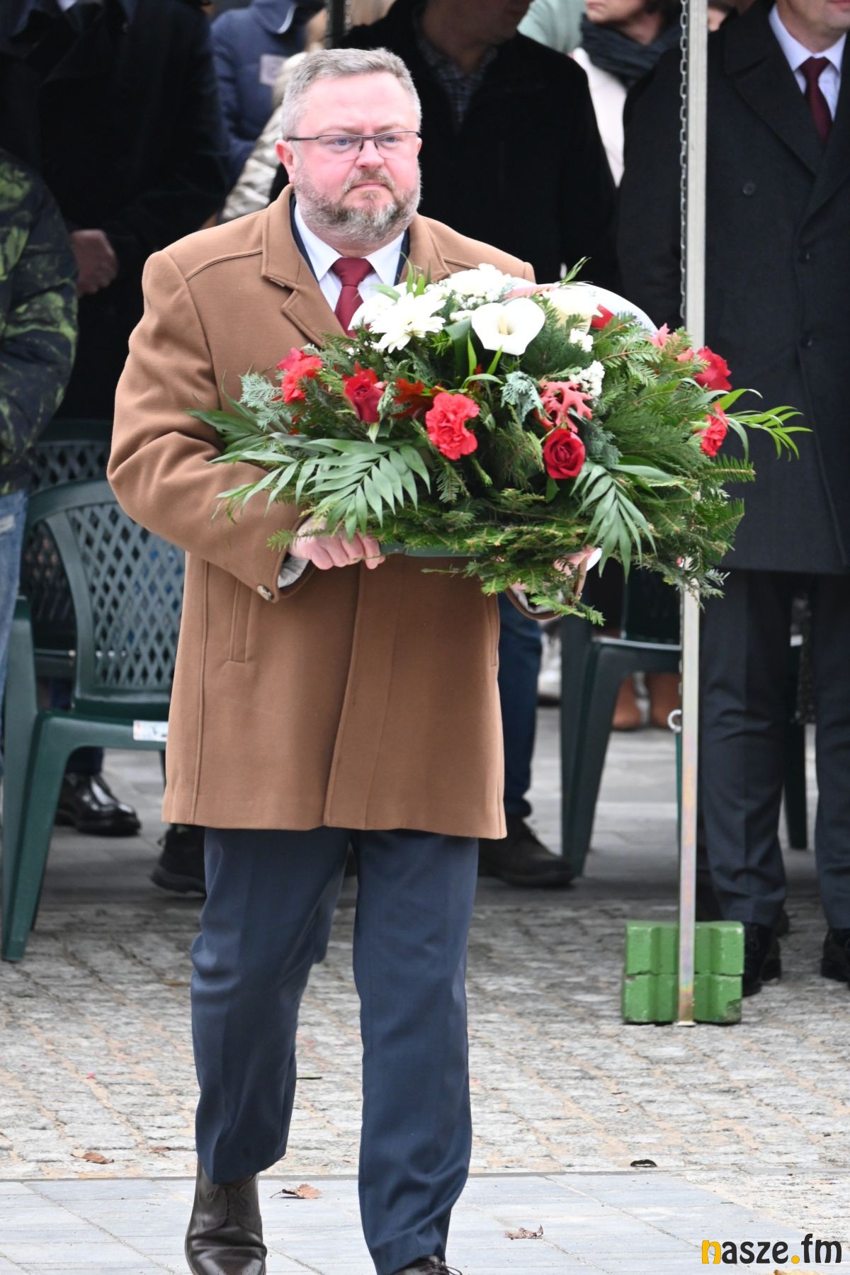 Po nabożeństwie, w rytmie marszowej muzyki, uczestnicy udali się na plac Wolności. Tam, przy pomniku Marszałka Józefa Piłsudskiego, odbyła się oficjalna część uroczystości. Był hymn państwowy, przemówienia, i podniosły moment złożenia kwiatów przez liczne delegacje. Uczniowie pierwszych klas Zespołu Szkół im. Kazimierza Kałużewskiego i Juliusza Sylli złożyli uroczyste ślubowanie na sztandar szkoły. Swoim występem wydarzenie uświetnili młodzi artyści z Powiatowego Młodzieżowego Domu Kultury "Na pięterku".