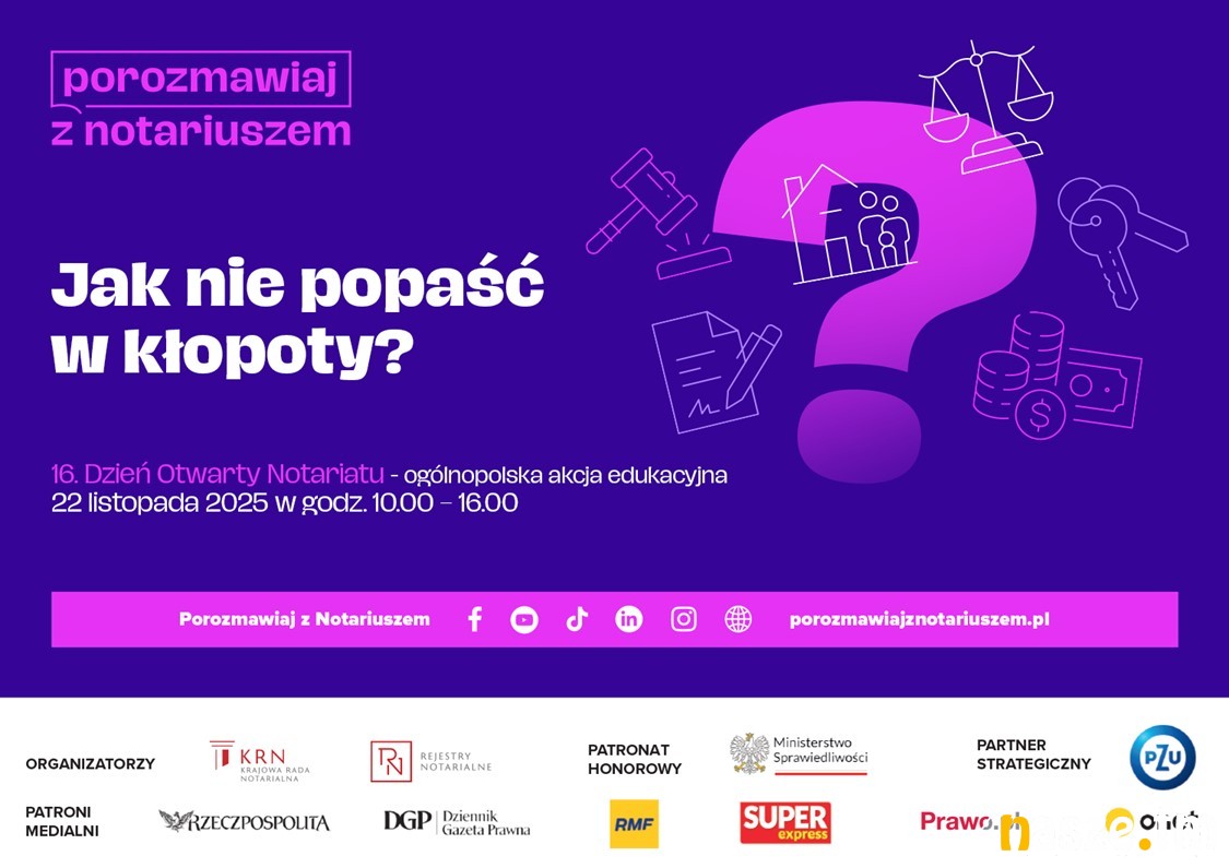 W tym roku akcja odbywa się pod hasłem "Jak nie popaść w kłopoty? Porozmawiaj o tym z notariuszem". W 54 miejscach w całej Polsce, będzie można skonsultować się z notariuszem, a także porozmawiać telefonicznie i online oraz poprzez kanały w social mediach.