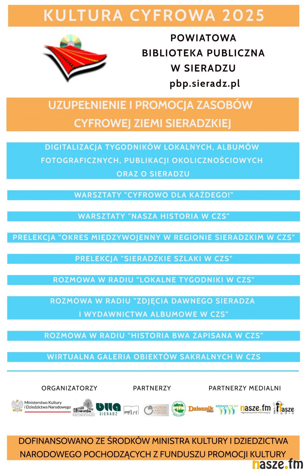 Powiatowa Biblioteka Publiczna w Sieradzu kończy realizację projektu "Uzupełnienie i promocja zasobów Cyfrowej Ziemi Sieradzkiej" w ramach programu "Kultura cyfrowa 2025".