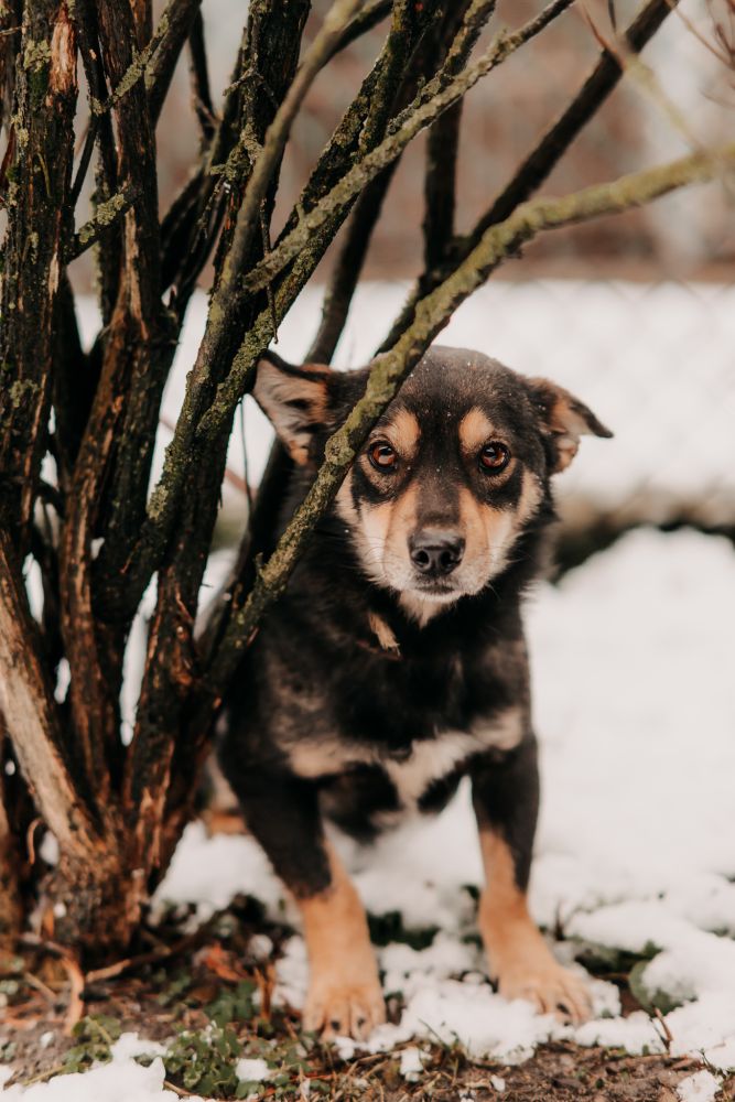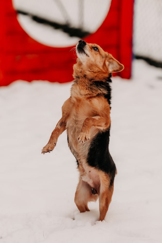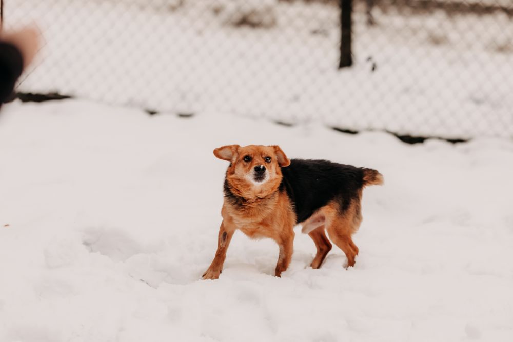 Imbus urodził się w 2018 roku i trafił do schroniska jako 7-letni psiak, który dopiero zaczyna uczyć się nowego życia u boku człowieka. To pies średnio aktywny, na spacerach i wybiegu z radością eksploruje teren, ale nie jest typem niekończącego się wulkanu energii. W śniegu biegał jak szczęśliwy dzieciak, a na przywołanie reagował pięknie, z ciekawością i chęcią kontaktu.