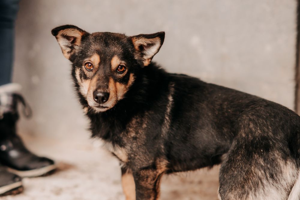 Niko urodził się w 2023 roku, waży 12 kg i jest psiakiem, który w momencie trafienia do schroniska miał epizody agresji. Był wtedy napięty, niepewny i reagował w sposób, który wskazywał na duży stres. Dlatego początkowo zdjęcia wykonaliśmy w kojcu i podchodzimy do niego ostrożnie, dając mu przestrzeń.