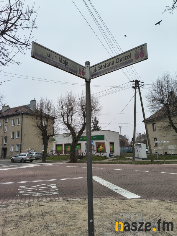 Przebudowa skrzyżowania ul. Stefana Okrzei z ul. 1 Maja oraz ul. Grunwaldzką polegała na wyniesieniu skrzyżowania 10 cm od nawierzchni asfaltowej i ułożeniu kostki betonowej na powierzchni około 720 mkw.