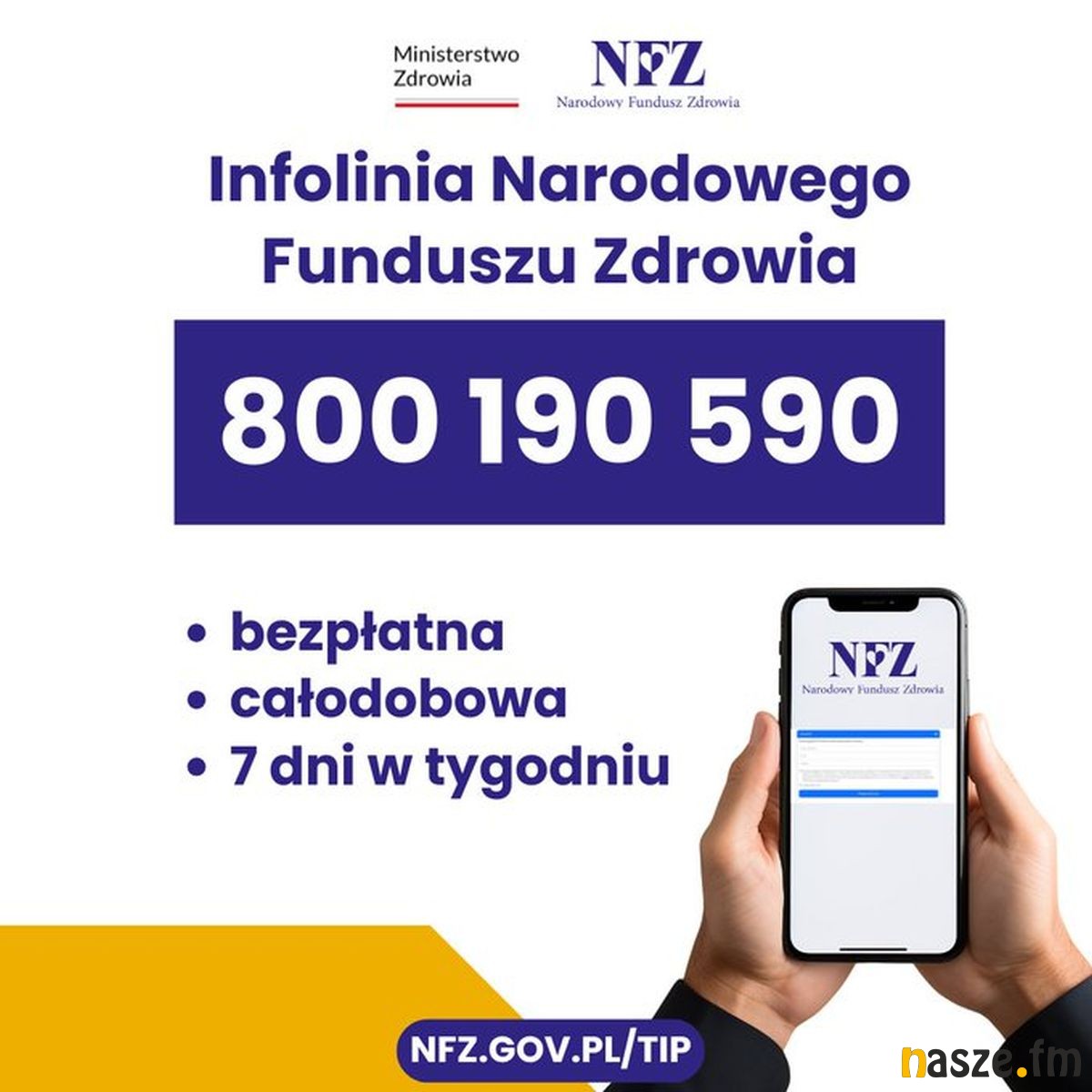 Do dyspozycji pacjentów non stop pozostają konsultanci Telefonicznej Informacji Pacjenta. Pod numerem infolinii Narodowego Funduszu Zdrowia 800 190 590 bezpłatnie i przez całą dobę można uzyskać wszelkie, niezbędne informacje na temat pomocy medycznej.