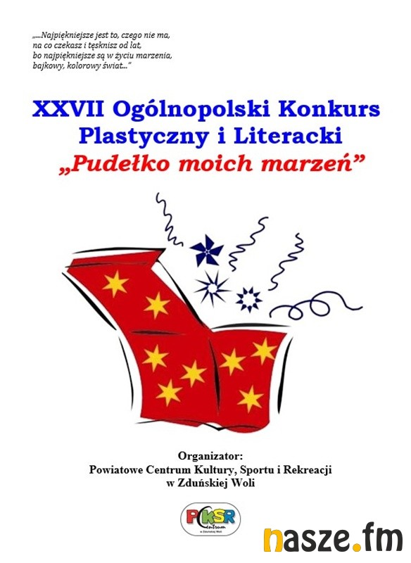 To tytuł konkursu, który organizuje po raz kolejny Powiatowy Młodzieżowy Dom Kultury "Na pięterku" w Zduńskiej Woli. Jest adresowany do dzieci i młodzieży. Na zgłoszenia do XXVII Ogólnopolskiego Konkursu Plastycznego i Literackiego "Pudełko moich marzeń" organizatorzy czekają do 13 lutego.