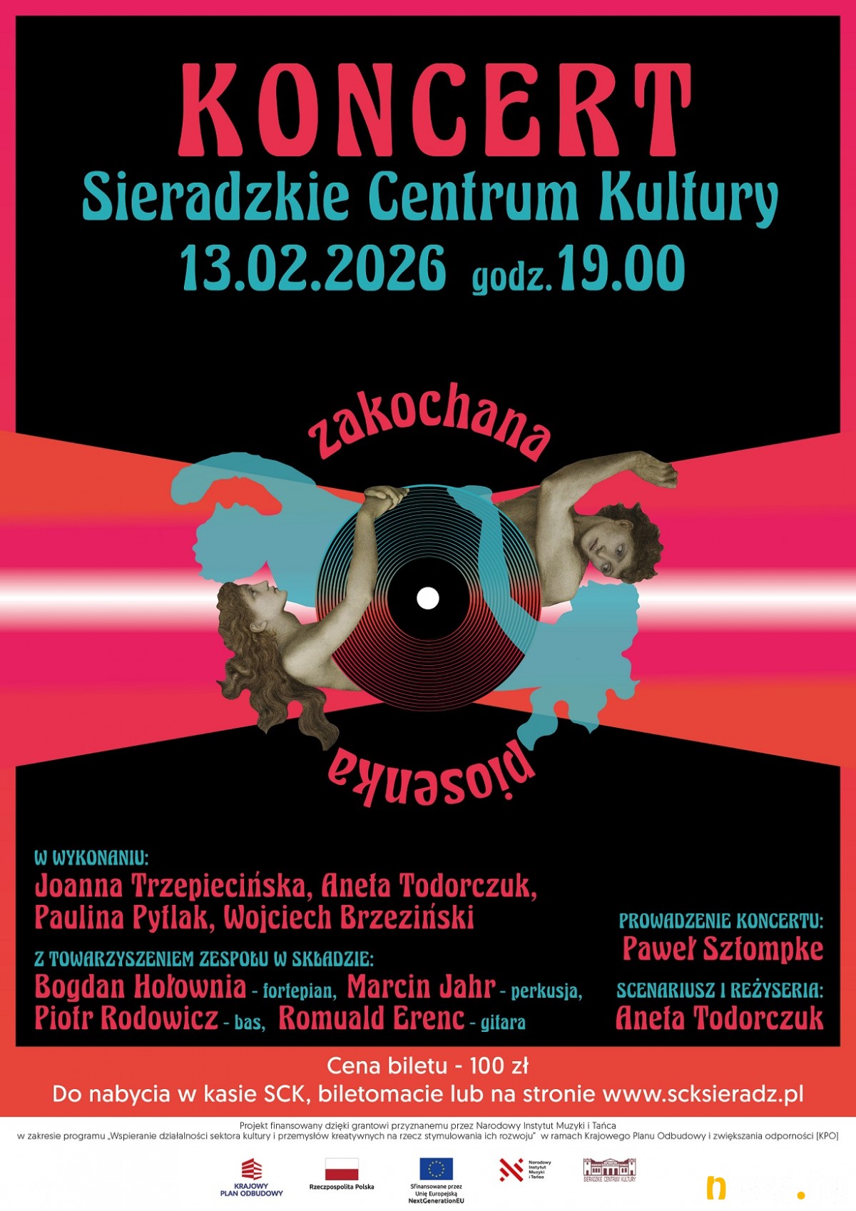 Bilety w cenie: 100 zł dostępne w: kasie SCK, biletomacie przy nowej sali kinowej oraz online: www.scksieradz.pl.