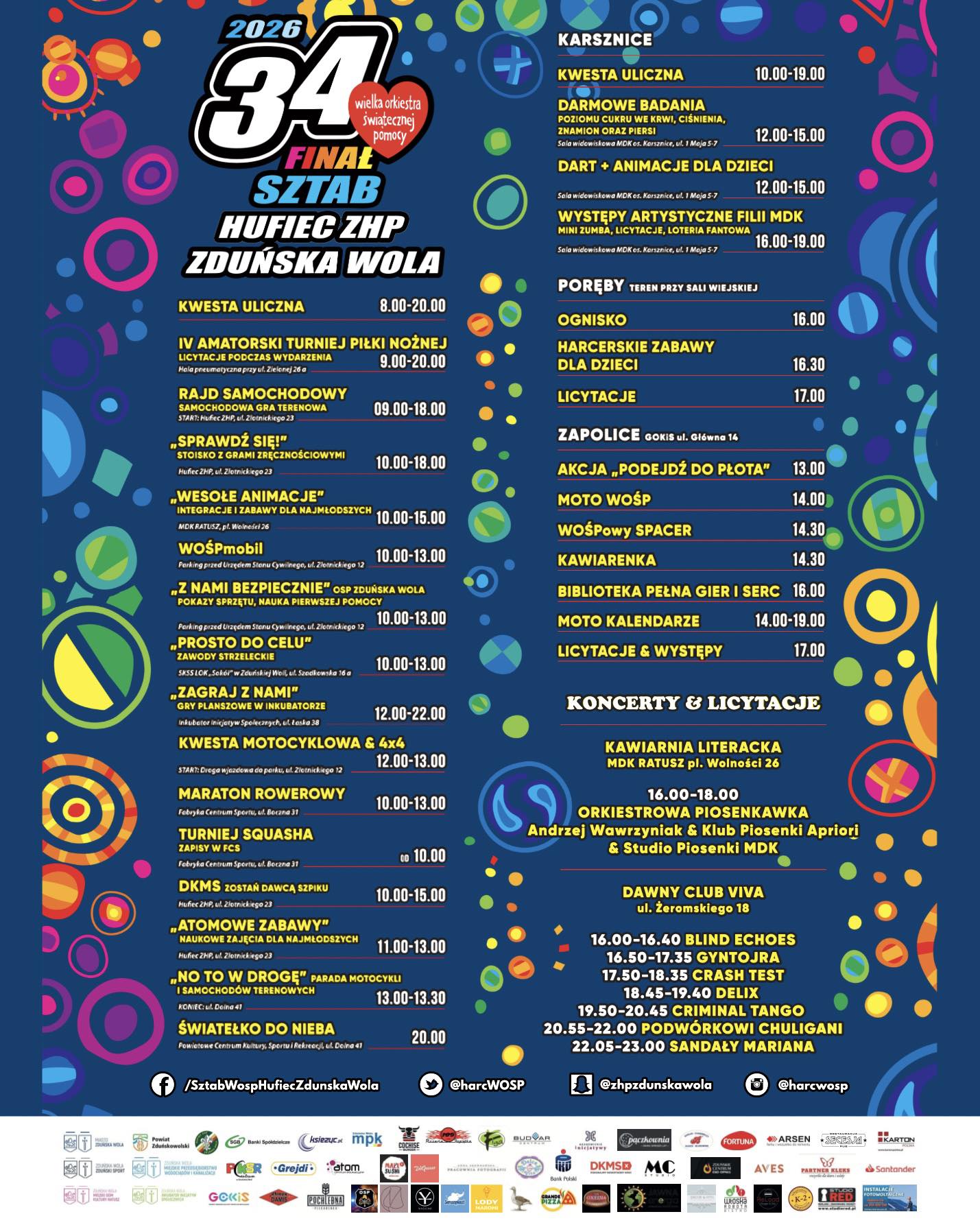 W Zduńskiej Woli działać będą dwa sztaby: PCKSR Zduńska Wola oraz Hufiec ZHP Zduńska Wola. W obu sztabach wolontariusze będą zbierać datki na ulicach w niedzielę już od godz. 8:00. Każdy przygotował także dodatkowo wydarzenia i koncerty, podczas których będzie można wspierać zbiórkę.