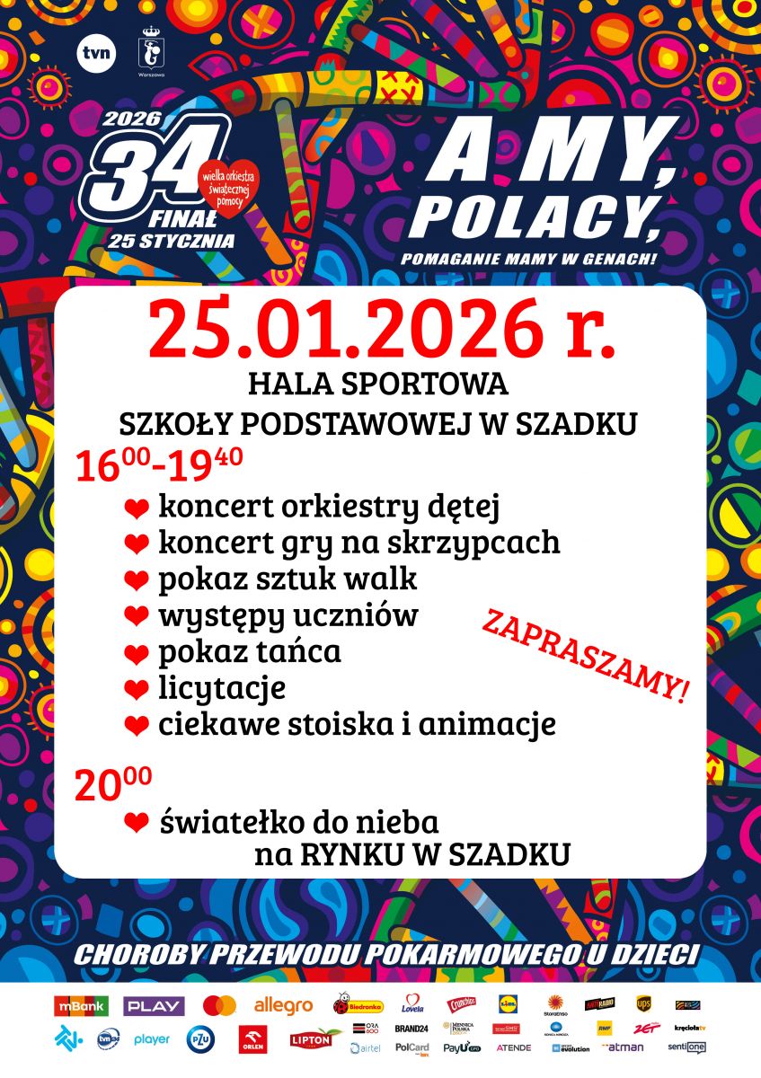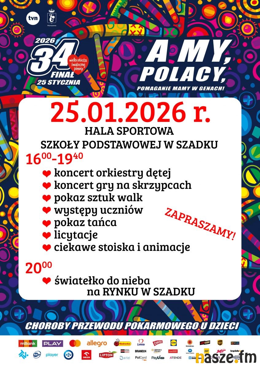 W finałową niedzielę, 25 stycznia 2026 roku, zagramy razem podczas 34. Finału Wielkiej Orkiestry Świątecznej Pomocy. Cel tegorocznej zbiórki to diagnostyka i leczenie chorób przewodu pokarmowego u dzieci. Gramy pod hasłem "Zdrowe brzuszki naszych dzieci". Jak zawsze, Sieradz aktywnie włącza się w działania WOŚP, oferując liczne atrakcje i tradycyjne licytacje na antenie Naszego Radia organizowane przez nasz sztab, będzie również 3. Sieradzki Bieg Policz Się z Cukrzycą.