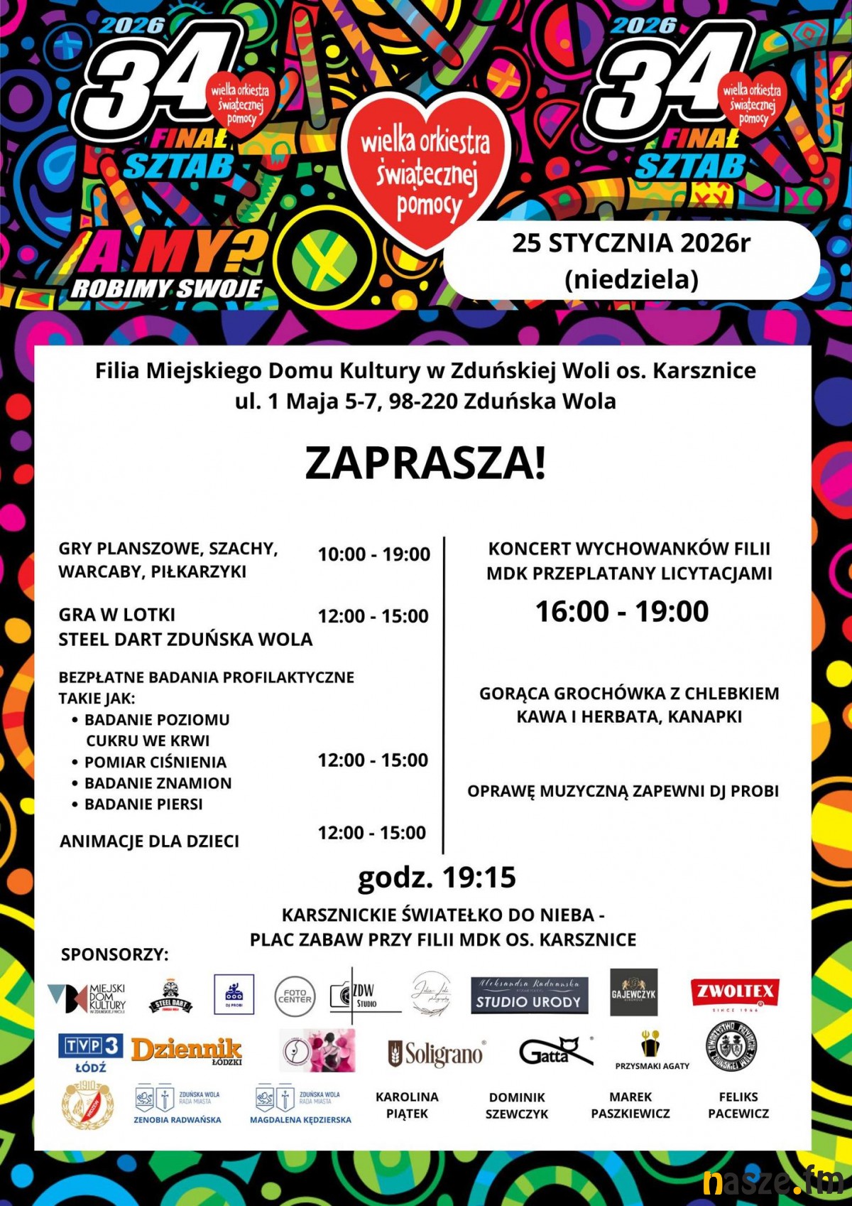 W najbliższą niedzielę, 25 stycznia, odbędzie się 34. Finał Wielkiej Orkiestry Świątecznej Pomocy. W tym roku celem zbiórki jest wsparcie diagnostyki i leczenia chorób przewodu pokarmowego u dzieci. Dla mieszkańców Zduńskiej Woli tego dnia przygotowano sporo atrakcji i wydarzeń. Działo będzie się też w innych miejscowościach powiatu zduńskowolskiego.