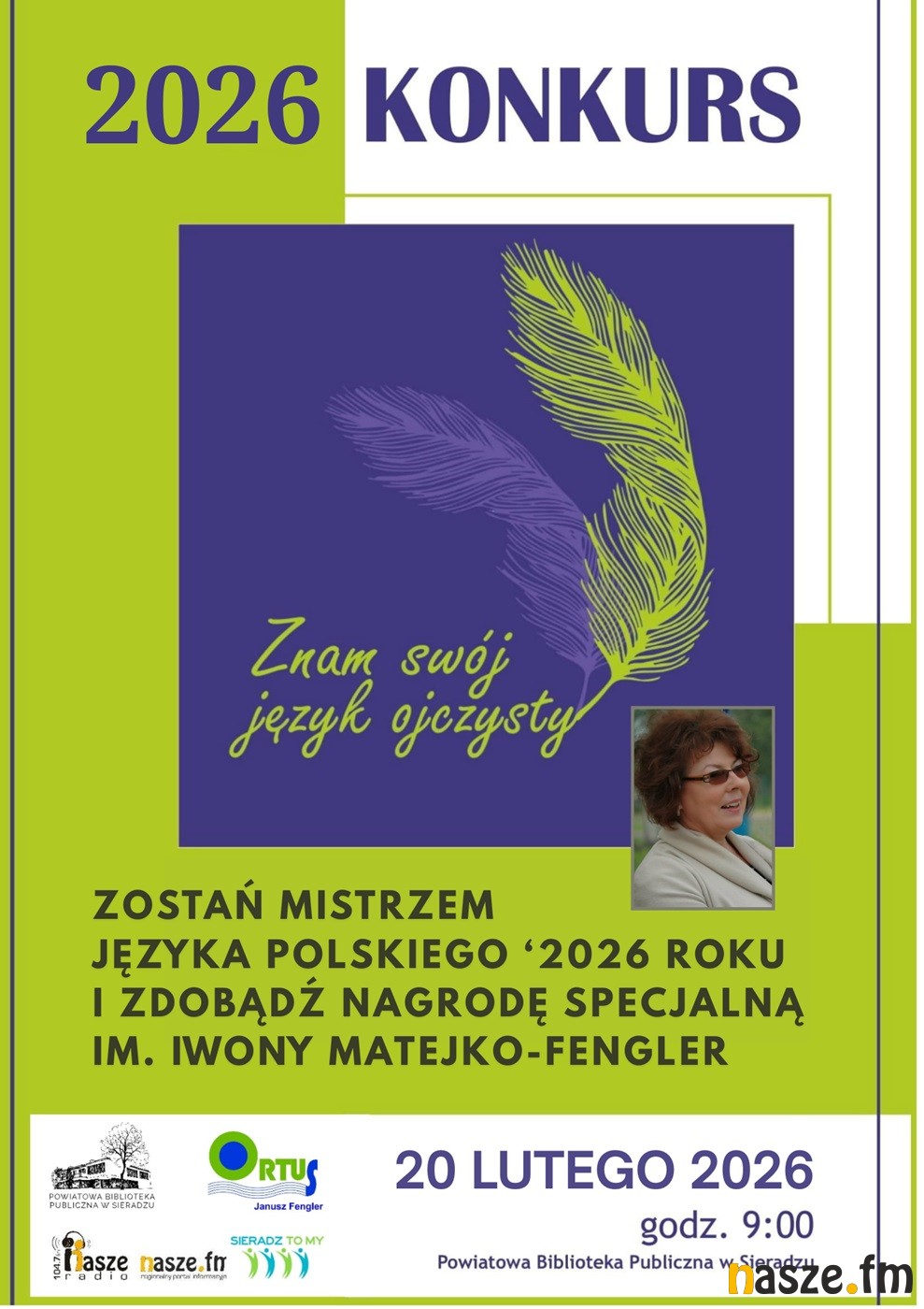 To propozycja biblioteki powiatowej w Sieradzu, która zaprasza po raz dziewiąty do udziału w konkursie "Znam swój język ojczysty". Jest adresowany do uczniów klas ósmych szkół podstawowych i klas pierwszych szkół średnich.