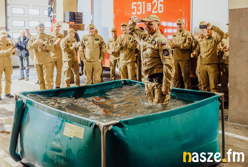Na koniec nie zabrakło również tradycyjnej kąpieli w zbiorniku wodnym zafundowanej przez kolegów ze zmiany służbowej.