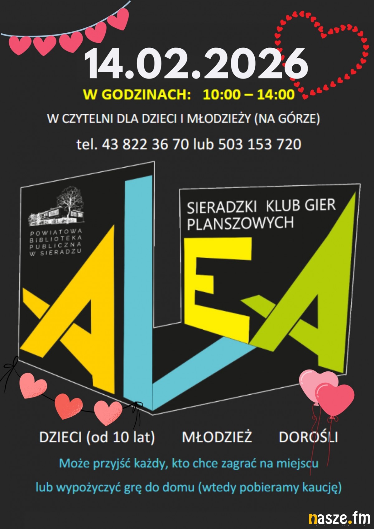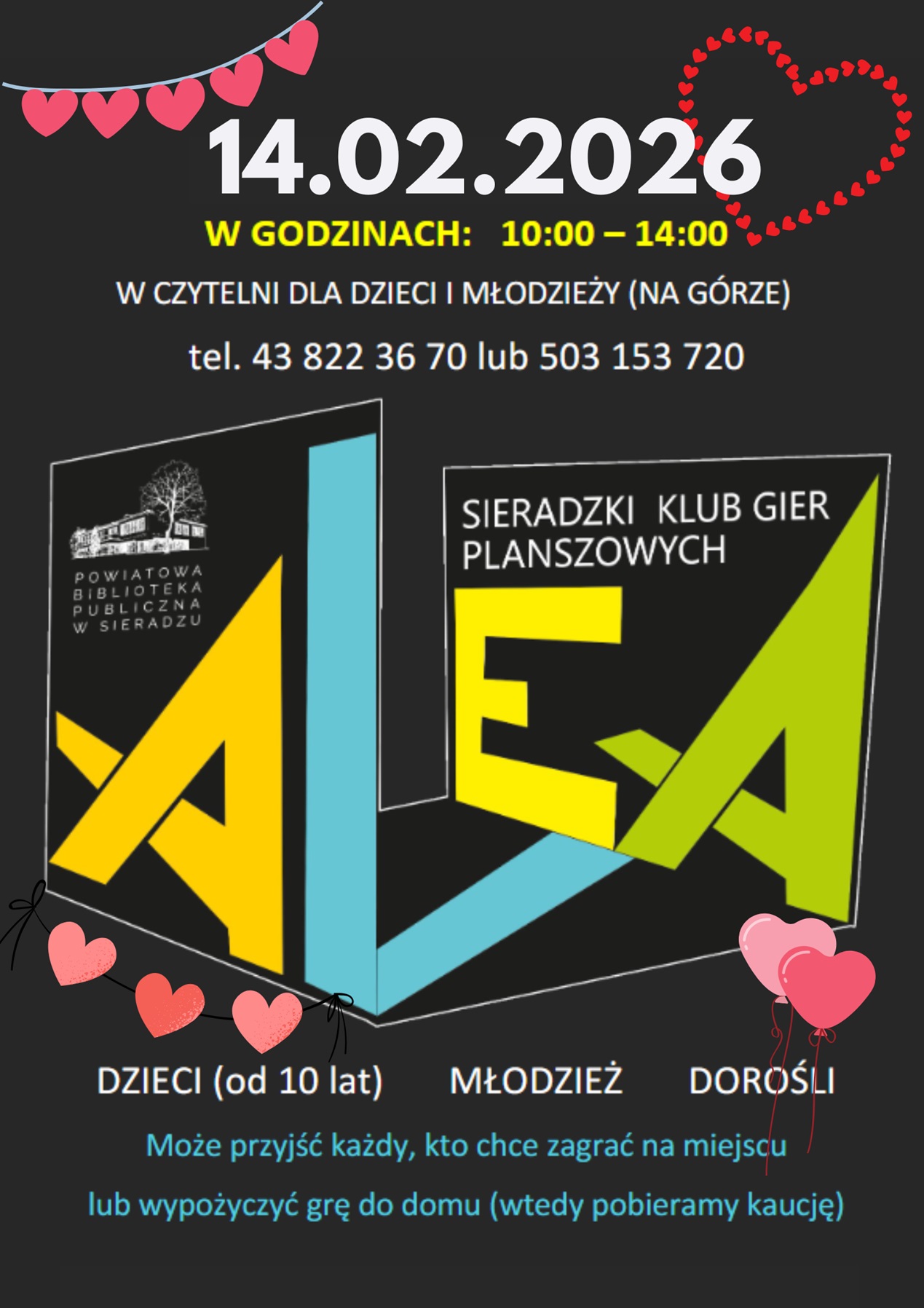 Arkusze z pytaniami dostępne są w wypożyczalni dla dzieci i młodzieży oraz w wypożyczalni dla dorosłych. W Walentynki spośród osób, które udzielą poprawnych odpowiedzi, organizatorzy wylosują trzy nagrody-niespodzianki. Więcej szczegółów dotyczących tej zabawy znajdziecie TUTAJ.