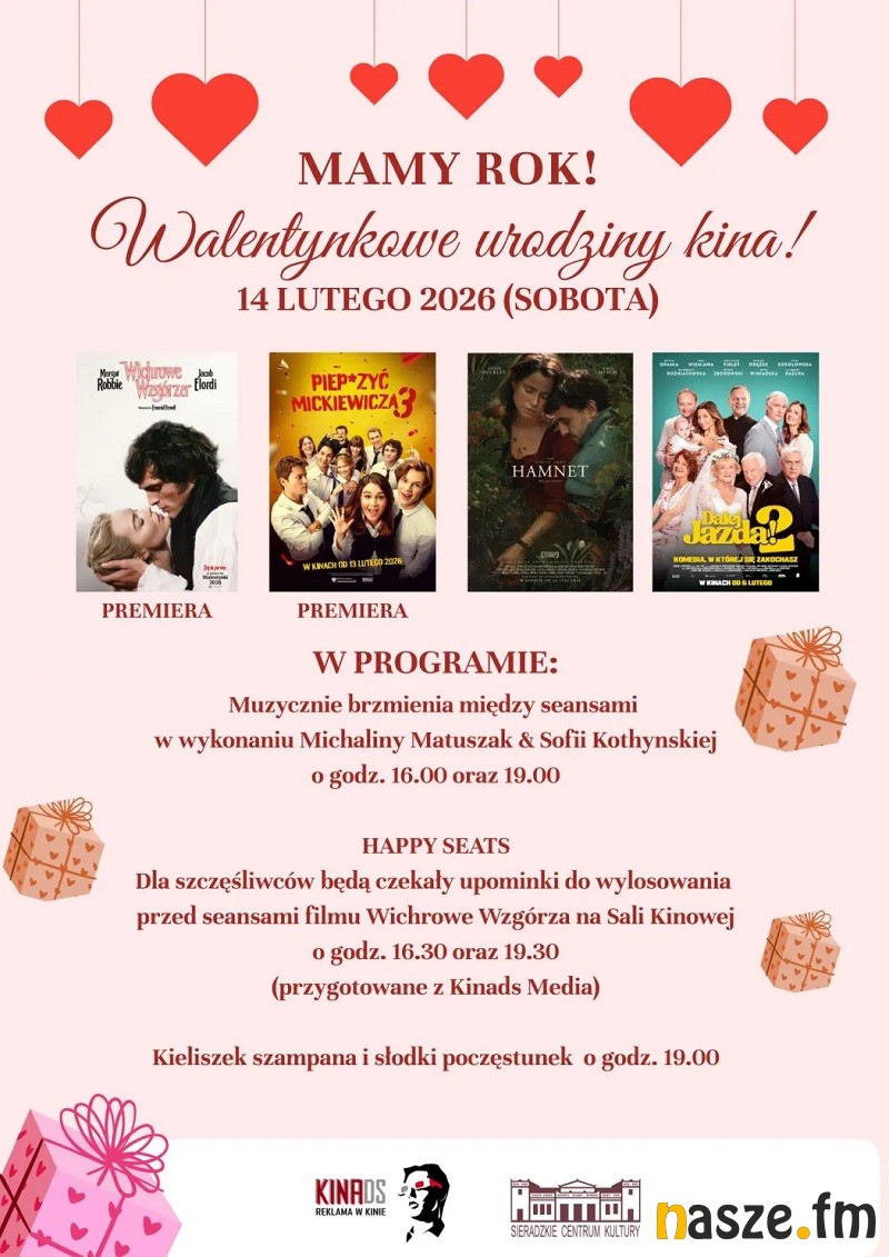 W sobotę, 14 lutego, zapowiada się wieczór i dla kinomanów oraz dla zakochanych (i nie tylko!). Nie zabraknie emocji, filmowej magii i miłych niespodzianek.