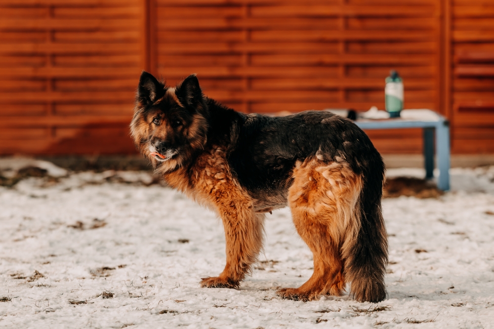 Dolores to suczka w typie owczarka niemieckiego długowłosowego. Duża, imponująca z wyglądu, ale jednocześnie bardzo delikatna w sposobie bycia.