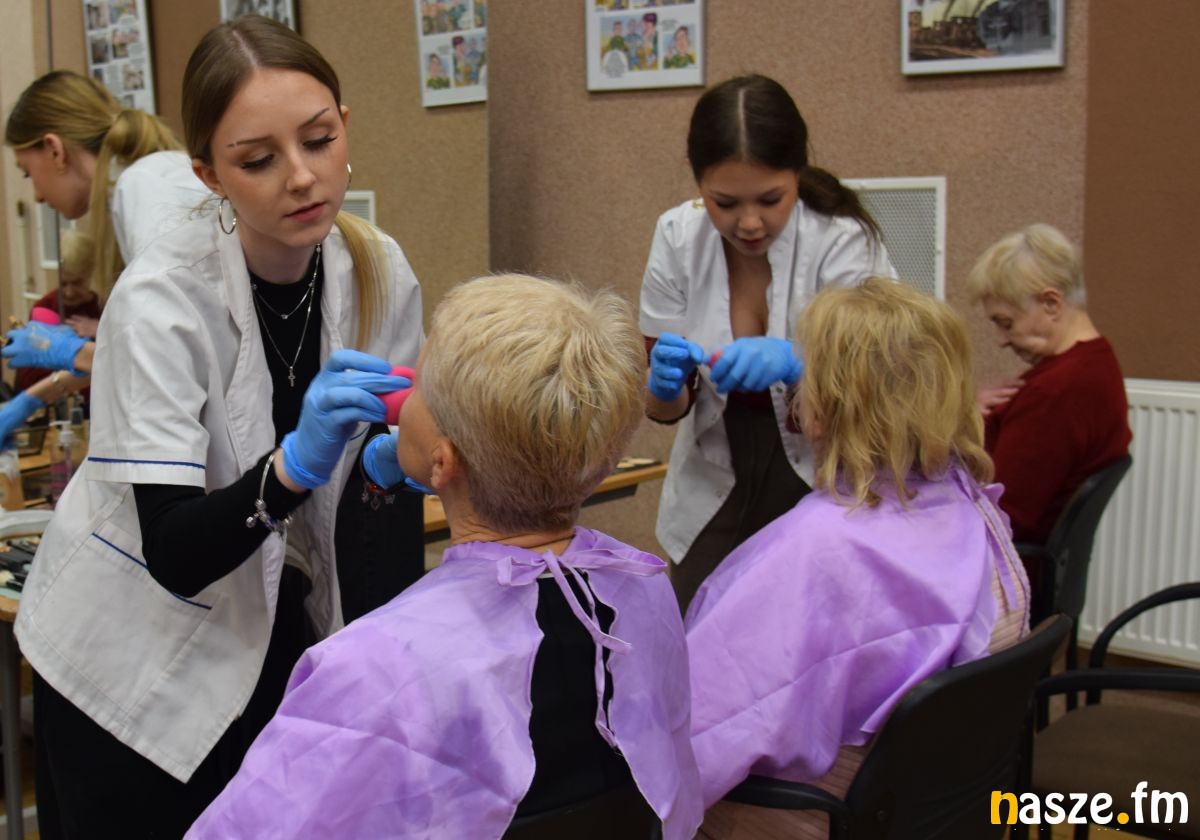 Połączone spotkanie Klubu Seniora "Uśmiech Seniora" oraz Karsznickiego Klubu Seniora "Lokomotywa 60+" odbyło się w środę, 4 marca 2026 roku, w Filii Miejskiego Domu Kultury na osiedlu Karsznice. Z okazji Dnia Kobiet zadbano o włosy, paznokcie i twarze seniorek. Zabiegi kosmetyczne wykonywała młodzież ucząca się zawodu pod kierunkiem nauczycieli.