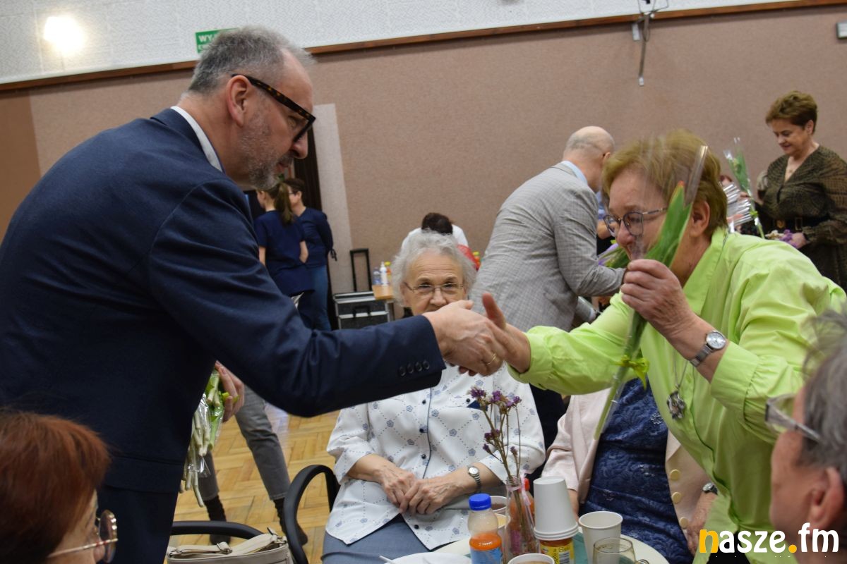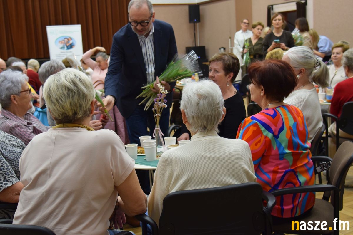 Seniorki odwiedził także prezydent Zduńskiej Woli Konrad Pokora, który wręczył paniom kwiaty i złożył życzenia.