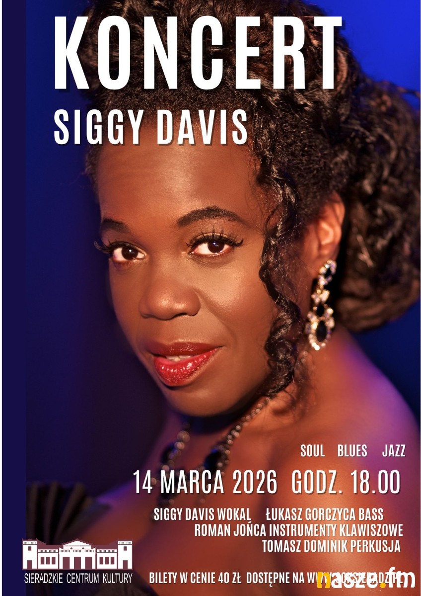 W sobotę 14 marca we foyer nowego budynku Sieradzkiego Centrum Kultury wystąpi Siggy Davis. Charyzmatyczna wokalistka pochodząca z Nowego Jorku, obdarzona potężnym, soulowo-jazzowym głosem. - Zabierze Państwa w muzyczną podróż pełną emocji i energii - zapowiadają organizatorzy.
