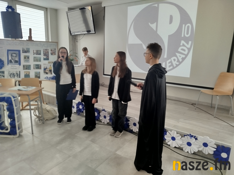 Na Święto Patrona w SP10 był dziś specjalny spacer z uczniami dla zaproszonych na obchody gości po najciekawszych szkolnych zakamarkach. W obchodach uczestniczyli m.in. Paweł Osiewała, prezydent Sieradza, a także Michał Pabich będący przewodniczącym Rady Miejskiej w Sieradzu i Agnieszka Kulawiecka, przewodnicząca Rady Rodziców w tej szkole.