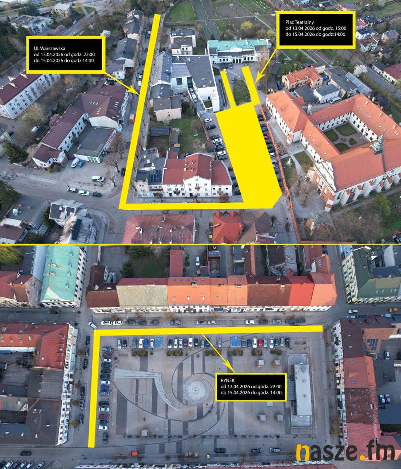 13 kwietnia 2026 od godz. 22.00 do 15 kwietnia do godz. 14.00 z tym, że parking przy Teatrze Miejskim wyłączony zostanie od 13 kwietnia 2026 od godz. 15.00 do 15 kwietnia 2026 do godz. 14.00. W tym czasie korzystanie z parkingu nie będzie możliwe. Organizatorzy proszą o usunięcie pojazdów przed wskazanym terminem oraz skorzystanie z alternatywnych miejsc postojowych.