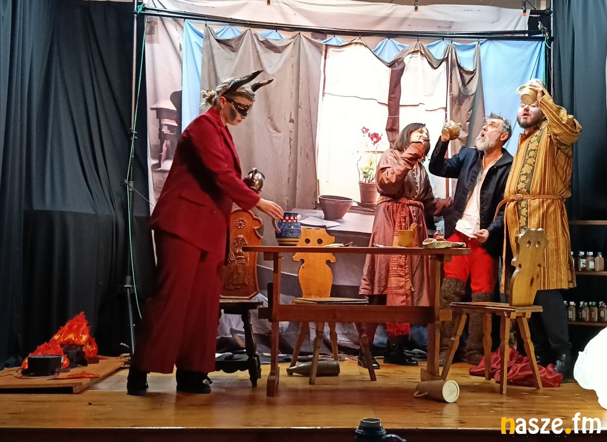 Publiczność została przeniesiona do dawnej karczmy, w której najlepsza zabawa była chyba dzień wcześniej, a jej uczestnicy wciąż próbowali dojść do siebie. W tej nieco zwariowanej rzeczywistości pojawili się wyjątkowi goście - anioł, diabeł oraz sama Śmierć. I trzeba przyznać, że każdy z nich miał sporo do powiedzenia.
