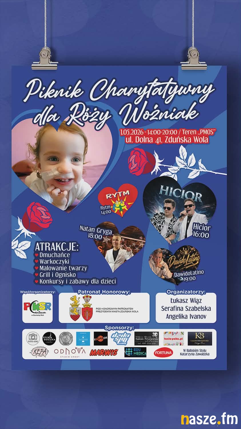 - Mnóstwo atrakcji dla całych rodzin. Będą z nami duże maskotki. Koncerty zespołu Rytm Agnieszki Grzegorzewskiej, wystąpi Hicior, Natan Gryga i na koniec Dawido Latino, który śpiewa na co dzień ze Skolimem. Gorąco zapraszamy. Oprócz tego będzie dużo licytacji, fajnych licytacji. Będzie do wylicytowania m.in. piłka Widzewa, najprawdopodobniej loty balonem, weekendy nad jeziorem. Będzie się działo - dodaje Łukasz Wiąz, kolejny z organizatorów pikniku do małej Róży.