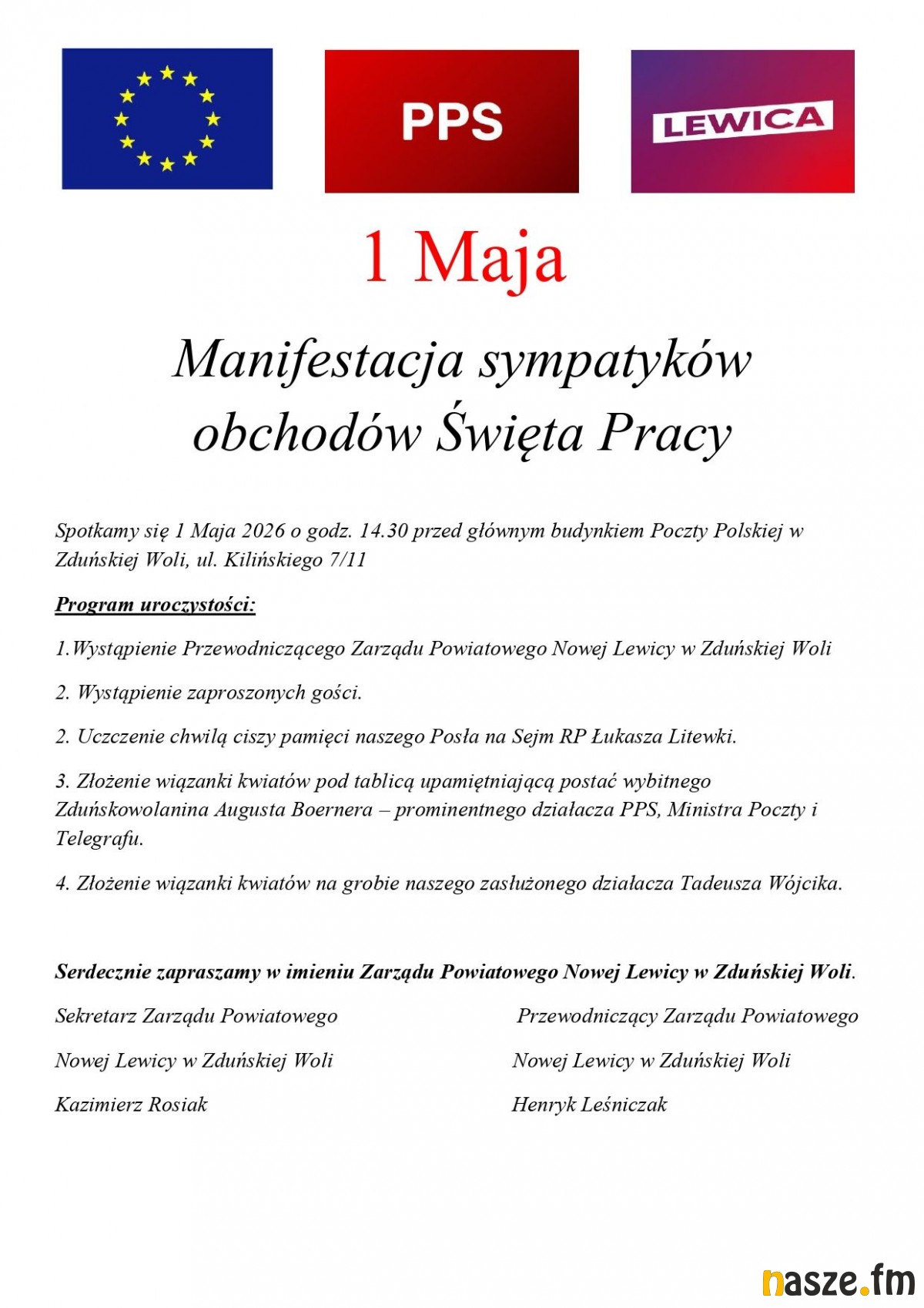Manifestacja sympatyków obchodów Święta Pracy w Zduńskiej Woli