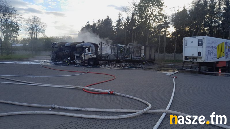 Ze wstępnych ustaleń strażaków wynika, że pożar objął jedną z ciężarówek i ten ogień przeniósł się na dwa inne zaparkowane tam auta ciężarowe. W efekcie spaleniu uległy trzy ciężarówki, a nadpaleniu pobliskie auto osobowe.