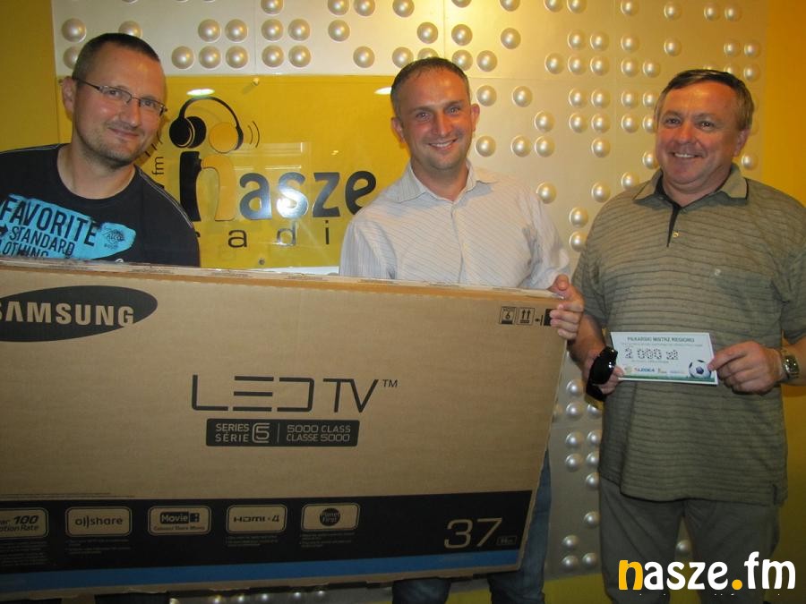 Piłkarskim Mistrzem Regionu został Mariusz Góra - zawodnik A klasowego LKS -u Chojne. Nasz laureat był wyraźnie zaskoczony przebiegiem głosowania i nie spodziewał się, że z grona piłkarzy, którzy znaleźli się w plebiscycie to właśnie jemu przypadnie w udziale zaszczytny tytuł. Mariusz Góra w piłkę gra już 20 lat. Kibice pamiętają go z występów w Warcie Sieradz, LGKS-ie Charłupia (był także prezesem klubu), a ostatnio LKS-ie Chojne. Z tym klubem nasz laureat wywalczył w zakończonym właśnie sezonie 7 miejsce w A klasie, poza tym prowadzi jeszcze drużynę juniorów. Nasz zwycięzca z powodzeniem występuje także w hali w rozgrywkach amatorskich, ostatnio w drużynie TEZET. Zgodnie z regulaminem plebiscytu laureat oprócz tytułu otrzyma telewizor oraz nagrodę, którą przekaże swojemu klubowi czyli 2000 zł na zakupy artykułów sportowych lub odzieży sportowej marki Legea. Nagrodę funduje sponsor konkursu importer marki Legea oraz dystrybutor sprzetu i trofeów sportowych. www.rajsportowy.pl Dziś w redakcji Naszego Radia odbyło się uroczyste wręczenie nagród w plebiscycie, które odebrali: Mariusz Góra i prezes klubu Jerzy Pryk.