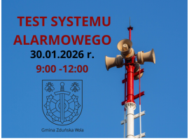Jutro, 30 stycznia, na terenie Gminy Zduńska Wola przeprowadzony zostanie test systemu alarmowania mieszkańców. Syreny zawyją w godz. 9:00 - 12:00.