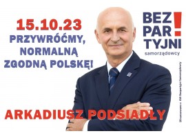 Normalna, bezpartyjna Polska to dzisiaj jedyna gwarancja bezpiecznej i zgodnej przyszłości naszych dzieci, dlatego Bezpartyjni Samorządowcy z listy nr 1 wciskają klin pomiędzy dwóch największych graczy partyjnych, zaślepionych wzajemną niechęcią. - Możemy wybrać inaczej, możemy wybrać zgodę – mówi "jedynka" Bezpartyjnych w naszym okręgu Arkadiusz Podsiadły.