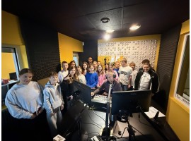 Dziś nasze studio odwiedziła kolejna grupa uczniów, tym razem była to szósta klasa ze Szkoły Podstawowej w Chojnem. Młodzież spróbowała swoich sił przed mikrofonem, wysłuchali też wielu ciekawostek na temat naszej pracy.