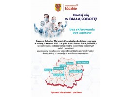 Jutro, 9 kwietnia, w szpitalach i przychodniach wojewódzkich w Łódzkiem będzie można zmierzyć ciśnienie, cukier, natlenienie krwi, przejść badania EKG, poradzić się psychologa czy onkologa. Wszystko to bez opłat i bez rejestracji w ramach akcji "Biała sobota".