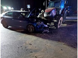 Do groźnego wypadku doszło w minioną sobotę wieczorem na drodze wojewódzkiej z Szadku do Łodzi. Samochód osobowy zderzył się z ciągnikiem rolniczym.
