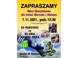 Kluby sportowe Unia Sieradz Męka oraz Rębieskie rozegrają w najbliższą niedzielę towarzyski mecz piłki nożnej. Całkowity dochód z tego wydarzenia pójdzie na pomoc dla chorej dziewczynki. Początek meczu o godz. 12:30 na boisku KS Rębieskie.