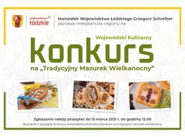 Z migdałami, makiem, pomarańczowy czy różany - mazurek, to tradycyjne ciasto na Wielkanoc. Mieszkańców województwa łódzkiego, którzy są przekonani, że potrafią zrobić ten najsmaczniejszy, zapraszamy do wzięcia udziału w wojewódzkim konkursie kulinarnym. Na zwycięzców czekają atrakcyjne nagrody.