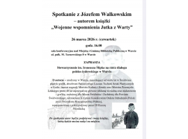 Stowarzyszenie im. Ireneusza Ślipka w Warcie zaprasza na spotkanie autorskie z Józefem Walkowskim, autorem książki pt. "Wojenne wspomnienia Jutka z Warty". Spotkanie odbędzie się w najbliższy czwartek w sali konferencyjnej nad biblioteką w Warcie.