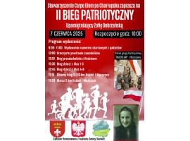 Stowarzyszenie Carpe Diem po Charłupsku zaprasza 7 czerwca na Bieg Patriotyczny. Bieg odbędzie się w kilku kategoriach. Dla każdego będą przygotowane pamiątkowe medale a dla zwycięzców puchary i nagrody. Trwają zapisy.