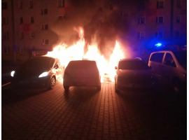 Nocny pożar aut na jednym z parkingów przy ulicy Daszyńskiego w Sieradzu. Dziś kilka minut po północy zaalarmowani strażacy wysłali na miejsce kilka zastępów z Jednostki Ratowniczo - Gaśniczej oraz OSP Sieradz.