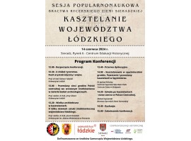 Bractwo Rycerskie Ziemi Sieradzkiej zaprasza na konferencję: Kasztelanie Województwa Łódzkiego - sesja popularnonaukowa 14 czerwca 2024 w Sieradzu, Rynek 6 - Centrum Edukacji Historycznej.