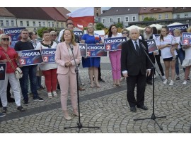 Dziś po południu na sieradzkim Rynku odbyła się konferencja prasowa Jarosława Kaczyńskiego. Prezes Prawa i Sprawiedliwości poparł w wyborach do Parlamentu Europejskiego kandydatkę tego ugrupowania politycznego, posłankę Joannę Lichocką.