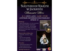 Centrum Informacji Kulturalnej w Sieradzu wspólnie z Bractwem Rycerskim Ziemi Sieradzkiej zaprasza na kolejną odsłonę ciekawej cyklicznej imprezy. Tym razem wydarzenie odbędzie się w mrocznym klimacie zaduszkowym. Zaplanowano je w CIK w sobotę 4 listopada br. od godz. 16, wstęp wolny.