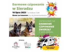 W niedzielę 16 lipca na skwerze za Inwarem przy ulicy Bohaterów Września w Sieradzu, od godz. 10:00 do 13:00 będziecie mogli za darmo zaczipować swoje zwierzęta. Do akcji zapraszają Fundacja Schroniska Funny Pets, Safe Animal oraz Gabinet Weterynaryjny MAGvet w Sieradzu.