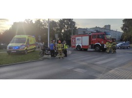 Dziś po południu w Sieradzu doszło do groźnie wyglądającego zdarzenia drogowego. - Kierujący fordem wyjeżdżając z ul. Zajęczej nie ustąpił pierwszeństwa jadącemu ul. Broniewskiego motocykliście - relacjonuje mł. asp. Mariola Sucherska z Komendy Powiatowej Policji w Sieradzu. Na szczęście żaden z uczestników nie odniósł poważnych obrażeń.