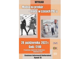 W takim modowym wydarzeniu będziecie mogli wziąć udział już dzisiaj, Wykład z historii mody okresu Polski Ludowej poprowadzi Agnieszka Jelonkiewicz, jedna z pierwszych konsultantek wizerunku w Polsce. Jako ekspert z historii mody, komentuje aktualne trendy, jest autorką kilkuset publikacji w pismach branżowych i portalach internetowych,