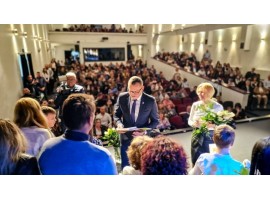 Ponad 300 osób wzięło wczoraj udział w uroczystej gali wręczenia nagród i stypendiów dla uzdolnionych dzieci i młodzieży. Wśród zaproszonych gości znalazło 152. uczniów sieradzkich szkół podstawowych i ponadpodstawowych oraz ich rodziny. W sali Teatru Miejskiego wyróżnieni odebrali pamiątkowe dyplomy, nagrody rzeczowe i stypendia za wyniki w nauce oraz za osiągnięcia artystyczne.