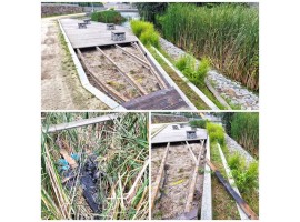 Dziś w nocy zniszczony został taras przy starorzeczu rzeki Żegliny w okolicy ul. Wodnej w Sieradzu. Wandale powyrywali część desek i je spalili.
