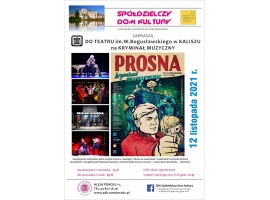 Spółdzielczy Dom Kultury w Sieradzu zaprasza do Teatru im. W. Bogusławskiego w Kaliszu na kryminał muzyczny "Prosna". Wyjazd do teatru będzie 12 listopada. Więcej szczegółów na plakacie.