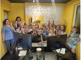 Dziś naszą redakcję odwiedziły dzieci, które uczestniczą w półkoloniach wypoczynkowych w Sieradzu zorganizowanych przez Towarzystwo Przyjaciół Dzieci. Poznały całą redakcję, studio i spróbowały swoich sił przed mikrofonem,